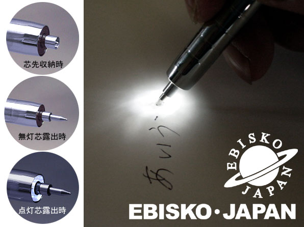ついに登場、 世界初!(ノック式) 「ライト付きシャーペン」 大変オシャレで実用的 とてもオシャレな グリーン発光。 ナイトフライトペンとして・・・。 最も実用的なホワイト発光。 ナイト業務にぜひ、一本。 只今、試験販売中! お一人様一本限り。 試験販売価格 2000円 National BR435 電池使用 メーカー完全保障付き お求めはE-mail ebisko@nifty.com までご連絡を! ボールペンタイプ 「光ファイバーペン」 最新タイプ ポリススペシャル 6000mmcd 白色LED使用 National BR435 電池使用 替え芯付き 取り説付き ペン本体価格 2000円 交換用電池芯セット 500円 連絡先メール ebisko@nifty.com 担当 東 2007.04.14 Sat 12:06:37
